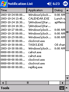A small and simple program, which just lists all the notifications scheduled in your PocketPC. You can use it to make sure that for example an alarm will sound tomorrow at 7am, but an unexpected task reminder won't wake you up at 6am on Sunday :)
